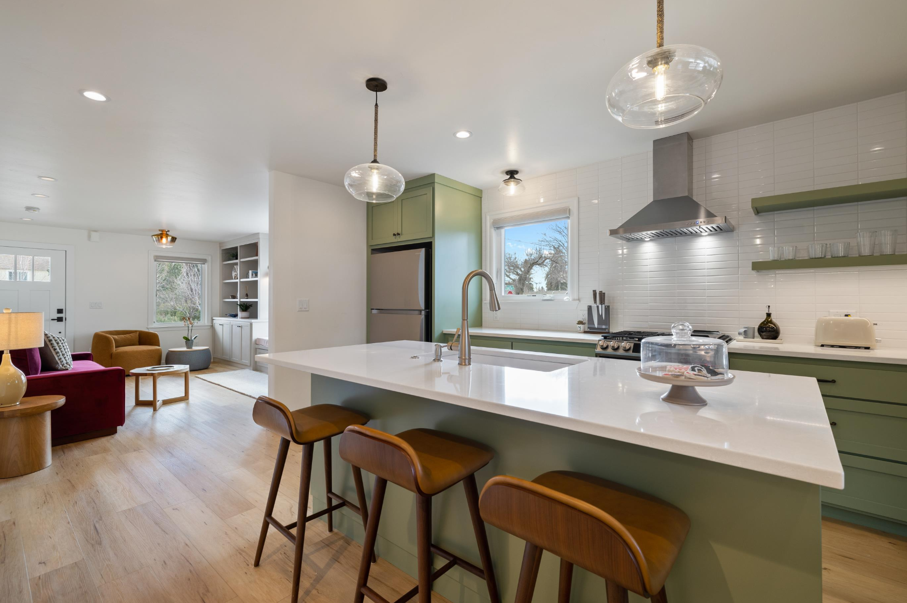 Having previously used this cottage as a rental property, the homeowner decided to transform it into a colorful little getaway for herself. The goal was to create a cheerful and colorful version of the “Man Cave,” which we dubbed the “Jewel Box.”